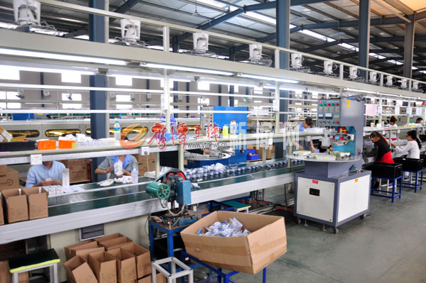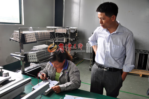 在察看過程中,張社喜時不時地停下腳步,詢問員工的工作情況,碰到員工一時無法解決的問題,他便十分耐心的給員工指導(dǎo)講解,看得出來,張社喜對生產(chǎn)技術(shù)很了解。在貼片車間,張社喜告訴記者,這些加工的設(shè)備都是數(shù)字化程式化的,只需員工在一旁看著就可以,并且設(shè)備速度之快堪比電腦。記者看到機器飛速的運轉(zhuǎn),燈片在機器飛快運轉(zhuǎn)中出來,再由員工進(jìn)行進(jìn)一步的細(xì)化,一位穿著工作服四十歲左右的女員工,手上正十分熟練的對燈片進(jìn)行二次加工。